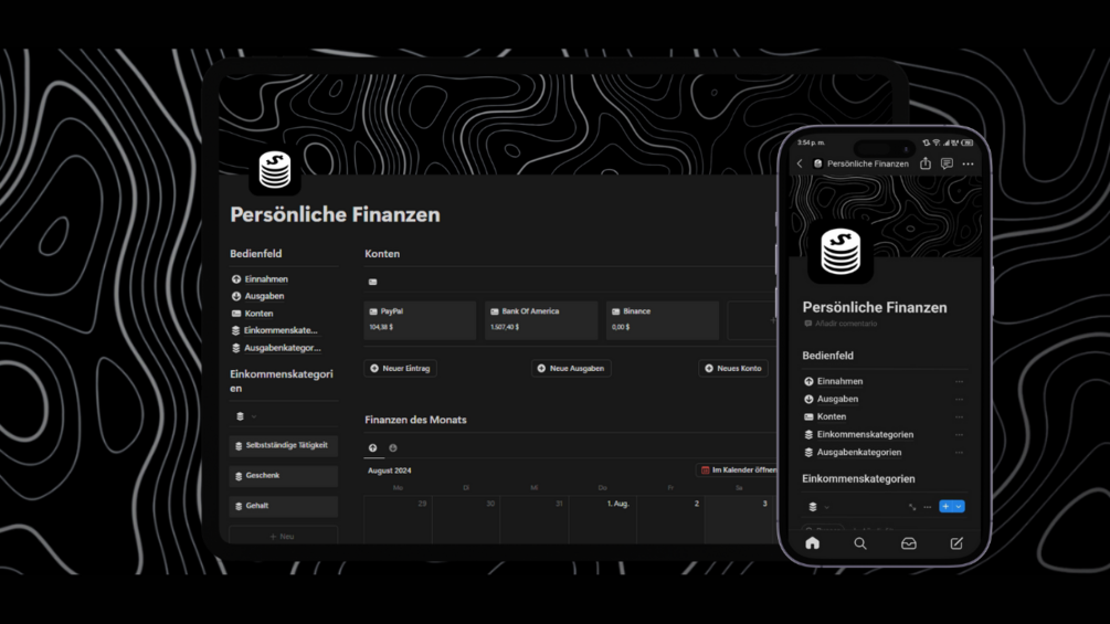 Die Vorlage „Persönliche Finanzen“ in Notion ist das unverzichtbare Werkzeug für alle, die ihre täglichen Finanzen klar und übersichtlich im Griff haben wollen. Diese Vorlage gibt Ihnen einen vollständigen Überblick über Ihre Einnahmen und Ausgaben und hilft Ihnen, fundierte finanzielle Entscheidungen zu treffen und Ihr Geld effizienter zu verwalten.